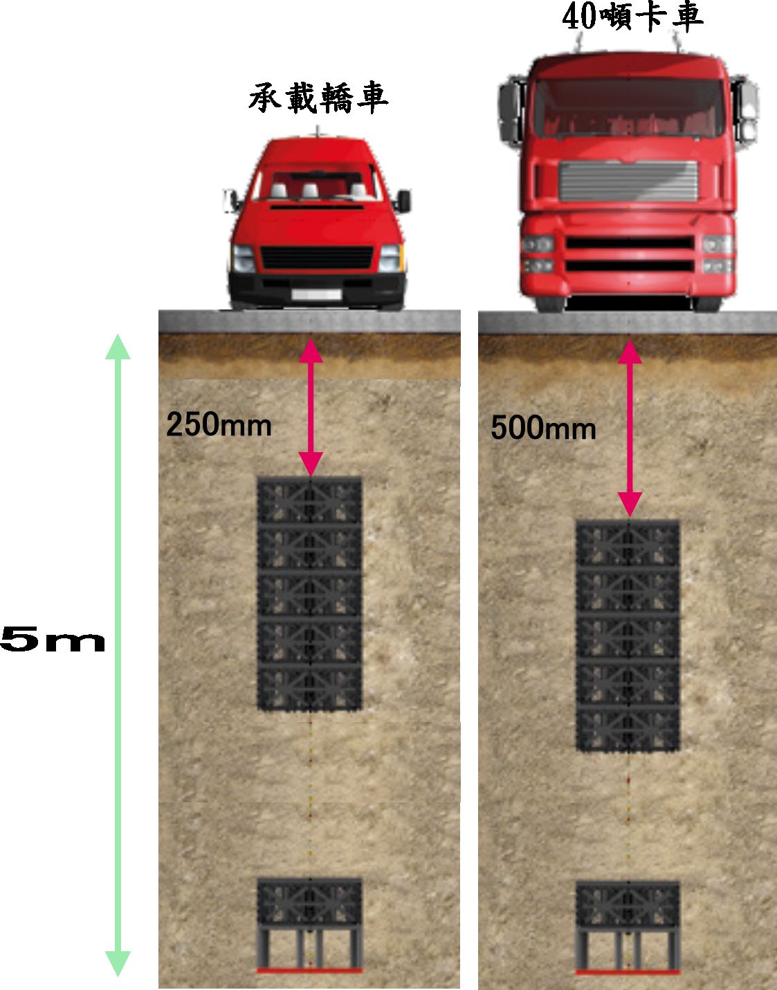 水箱上方覆土50公分,可以乘載40噸以上,